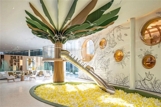 設(shè)計(jì)將天真浪漫的孩童暢想以童話場景的敘事導(dǎo)覽展開,以“童·游”為足跡探尋兒童視角下的美好世界,在里面也置入了很多公司原創(chuàng)的藝術(shù)品,設(shè)計(jì)通過色彩理解與畫面表現(xiàn)串聯(lián)起一個(gè)完整的童話故事,為日常生活注入一抹鮮明的亮色,豐富著每一個(gè)生活場景的趣味性,讓人們享受每一個(gè)愉悅瞬間,純凈真摯,自然靈動(dòng)。