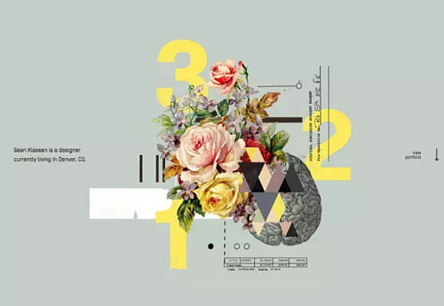 幾何圖形的邊緣和線條相對硬朗,硬朗的幾何圖形配合柔軟的視覺元素,會(huì)有很好的視覺沖擊感。Sean Klassen的網(wǎng)站,就是采用柔軟的視覺元素與硬朗的幾何元素構(gòu)成,用鮮花的柔美和幾何圖形的硬朗形成視覺對比,構(gòu)成主視覺的設(shè)計(jì)形式。