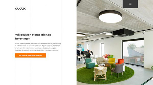 Duotix 在整個(gè)設(shè)計(jì)中使用留白來(lái)區(qū)分不同的內(nèi)容塊,并且每個(gè)內(nèi)容塊中都有各自的行為召喚按鈕。此外,在滾動(dòng)過(guò)程中,白色和彩色的背景不斷變化,刺激用戶不斷滾動(dòng)。