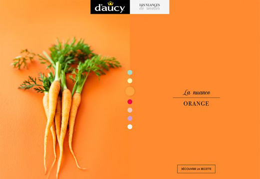 D’Aucy 在進(jìn)行分屏設(shè)計(jì)的時(shí)候,選擇了更加微妙的策略。左側(cè)僅有圖片,搭配著有紋理的背景;右側(cè)的背景選擇了近似的色彩卻沒有加上紋理,僅有文本標(biāo)題。兩者在保持近似一致的視覺設(shè)計(jì)的同時(shí),又巧妙地呈現(xiàn)出差異性。
