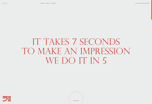 當我們談到極簡網(wǎng)頁設計風格的時候,我們都知道用大圖去突出,而如果全用文字呈現(xiàn)又是怎樣的效果呢?5s就大膽的運用了現(xiàn)代主義美學風格,整個內(nèi)容是用文字去體現(xiàn)的,并結合了一些粉彩和彩色插圖,使用戶很直觀的就明白了內(nèi)容。