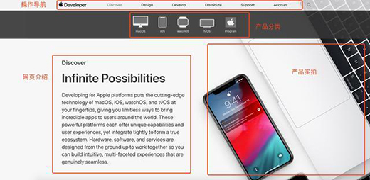 如Apple官網(wǎng),操作導(dǎo)航、產(chǎn)品分類、網(wǎng)頁(yè)介紹、背景通過(guò)親密性組合在一起,使得網(wǎng)頁(yè)邏輯清晰。
