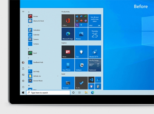 微軟表示正以更加簡化的設(shè)計刷新“開始”菜單,新的設(shè)計刪除了應(yīng)用程序列表中徽標Logo后面的純色背板,并在磁貼中使用了均勻、部分透明的背景。新的設(shè)計將創(chuàng)造更為美觀的應(yīng)用程序舞臺,尤其是Office和Microsoft Edge的Fluent Design圖標,以及今年初開始推出的針對內(nèi)置應(yīng)用程序(如計算器、郵件和日歷)的重新設(shè)計的圖標。