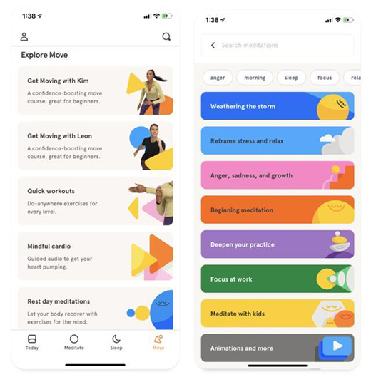 headspace這款產(chǎn)品我非常喜歡,將情感化用到了極致,在頁(yè)面很多細(xì)節(jié)地方運(yùn)用了不同的小橙人在背景上,視覺重量有輕有重,通過不同視覺重量來表達(dá)頁(yè)面內(nèi)容,非常巧妙。