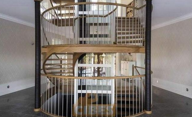 2 如果是圓弧形樓梯配以圓弧形電梯更美觀。