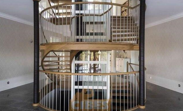 2 如果是圓弧形樓梯配以圓弧形電梯更美觀。