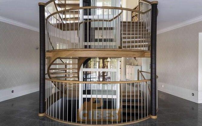 2 如果是圓弧形樓梯配以圓弧形電梯更美觀。