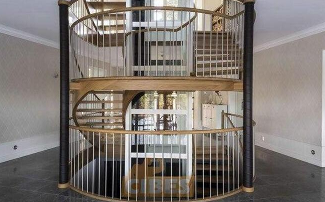 2 如果是圓弧形樓梯配以圓弧形電梯更美觀。