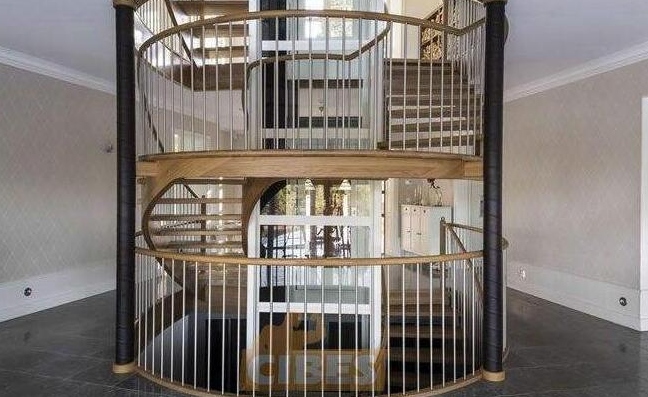 2 如果是圓弧形樓梯配以圓弧形電梯更美觀。